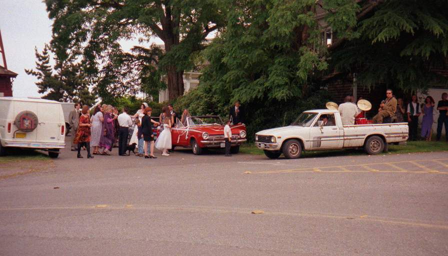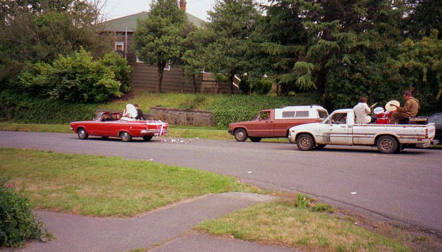 9. Deirdre and Charlie leaving their wedding with band in tow