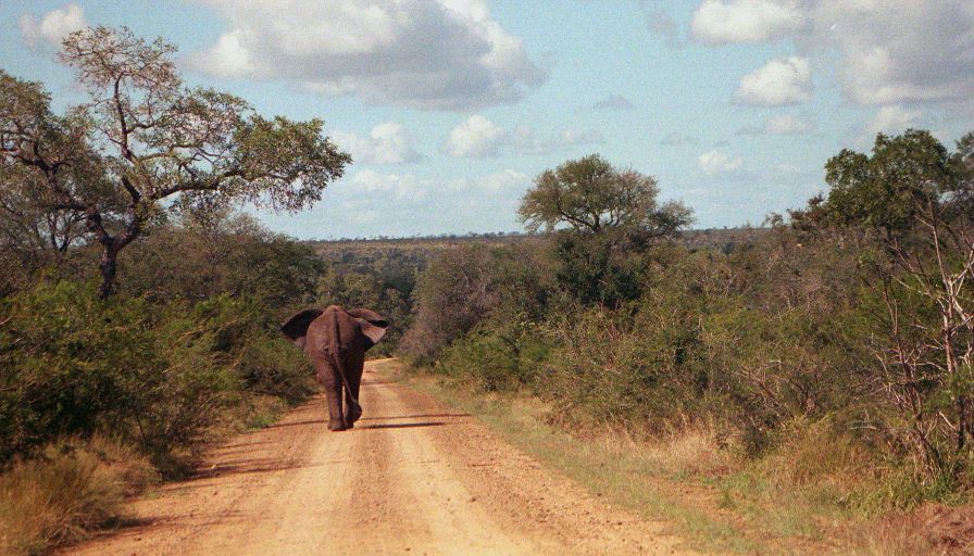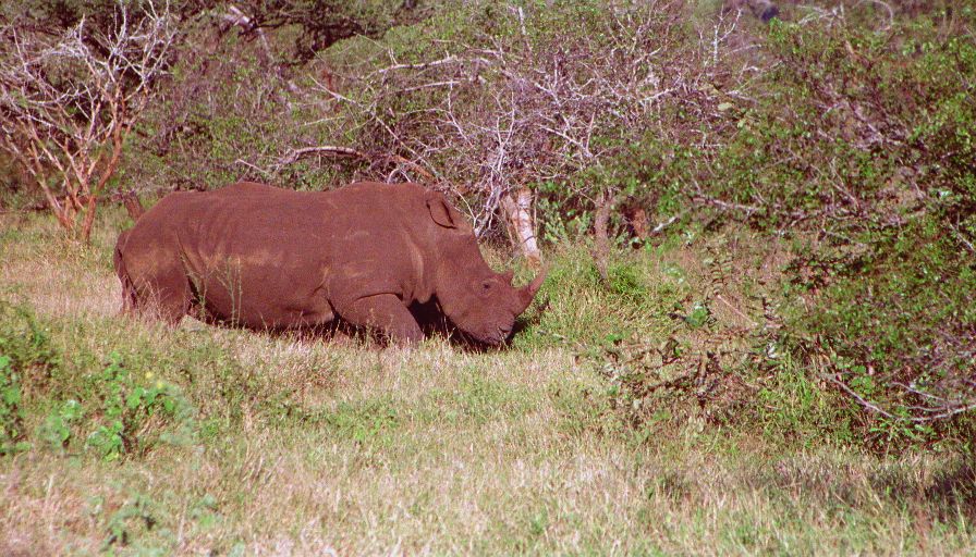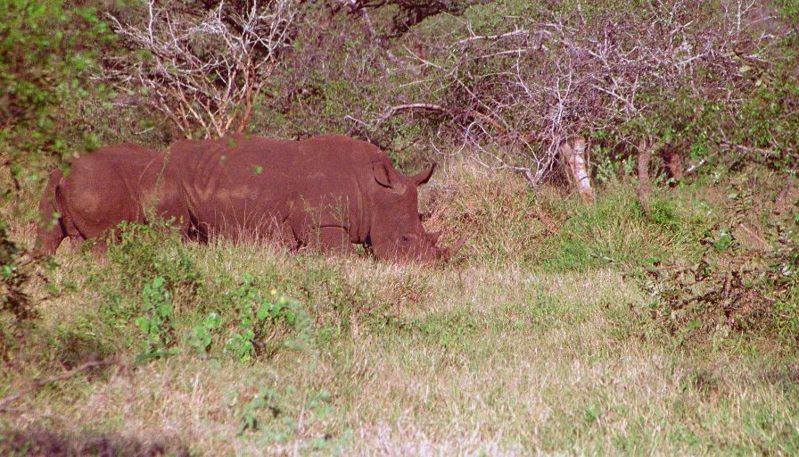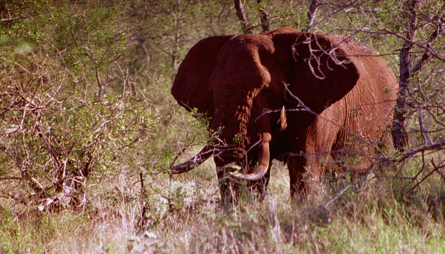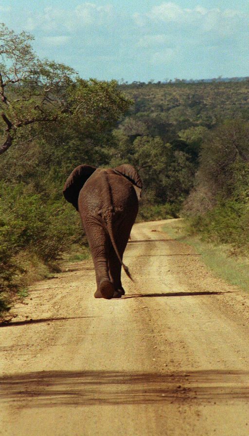 Several hours of nothing exciting had us running for camp - we had to confirm for the night's game drive by four. Being in a hurry we of course found something interesting - three White Rhinos, and close to the road! A few minutes later just 100 yards from the camp gate was another giant bull elephant.