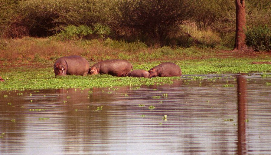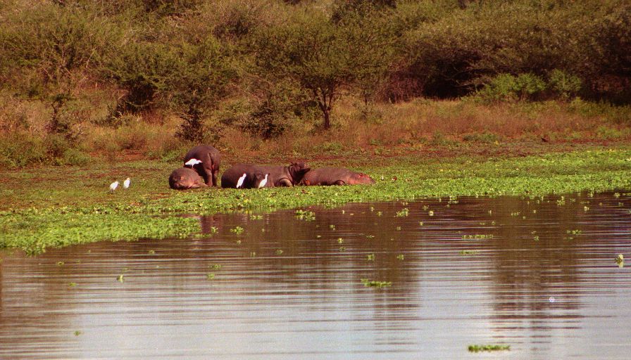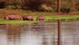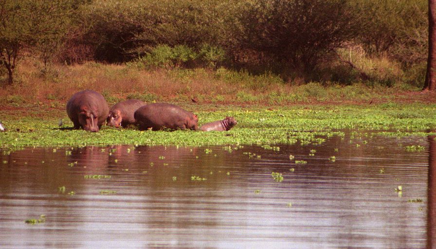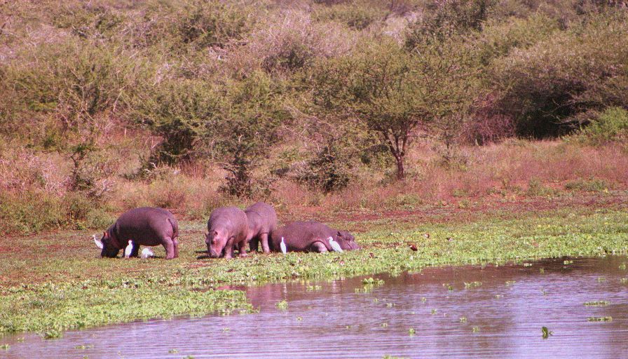 At Sunset we found the lake literally packed with hippos. Even more surprising a group of six of them were up grazing on the shore - I thought you never saw hippos on land during the day. In fact these are the first hippos I've seen on land period (at least at a reasonable distance). There was also a very young baby (still mostly pink). It was amazing how many there were in a relatively small lake - counted twenty-two, and there had to be many more. We left the lake quite excited about how many hippos we'd just seen, then a hundred yards down the road there's another group of three hippos - again grazing, and this time far from the water! Again and again we saw hippos I stopped counting after forty. Basically this stretch of the Sabie river is infested.