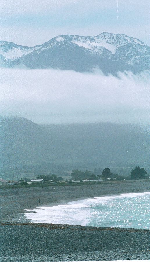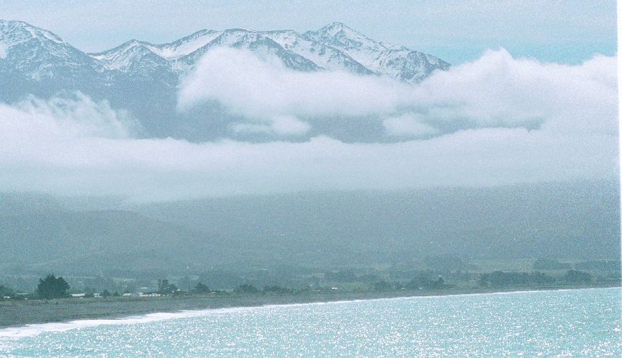 Got up early only to find that my shark dive had been canceled due to the wind. There was a chance it might be able to go out a couple hours later so I hung out. The later trip was canceled as well - sigh. It was mostly gray and pretty windy so not a lot to do. In the afternoon right after the final chance to dive had been cancelled the wind settled. I was walking across town (about 100m) to confirm my dolphin swim tomorrow when I glanced up just as the sun burst through the clouds - the snow on the mountains was dazzling white, it was incredible. I sat on the beach and just watched the clouds go by for an hour. When the sun started to go down I spent the evening watching videos in the lounge.