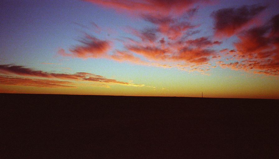 Drove off with the most incredible fires burning in the sky. The track was mostly pretty good so at the campgound decided to keep going. The drive was quiet but stressful. The desert night was incredibly black, but the stars were amazing! Pulled in to William Creek (population 10 - Australia's smallest town) just before eight. Set up camp at the pub, had a great dinner, then sat up drinking beer and playing with the resident kids.