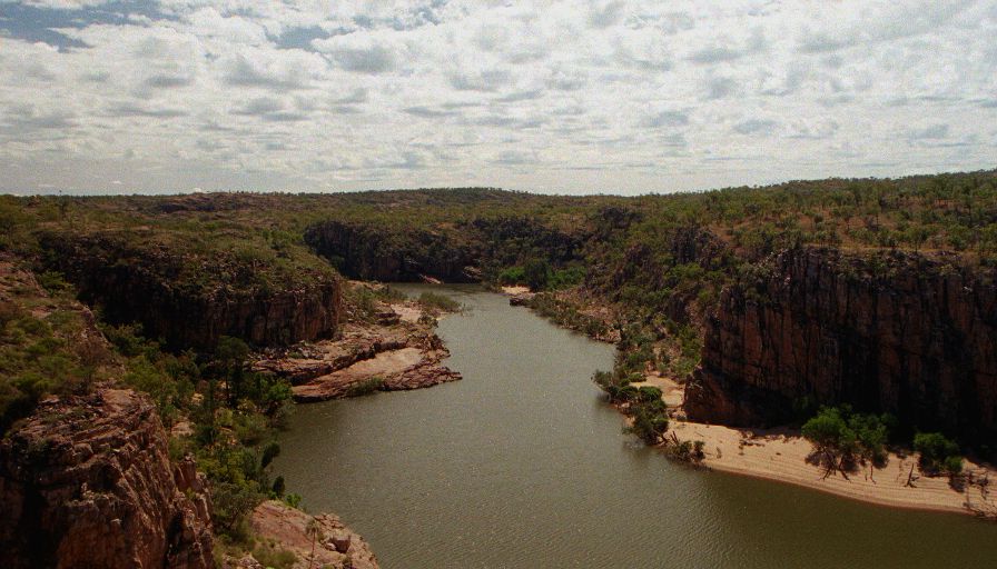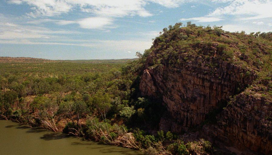 Did the hour drive to Katherine, then decided to drive right through to get to Nitmiluk (Katherine Gorge) National Park. Went for the for longest hike the ranger recommended for a half day - the Windolf Trail (5+ mi / 8.5 km). I was a little worried when the ranger said the temperature on the trail was peaking at 45°C (113°F)! It was hot, very hot, but I don't think it was quite that hot - maybe 35°C (95°F). At least the humidity isn't quite so bad out here, though the air is still a little thick.