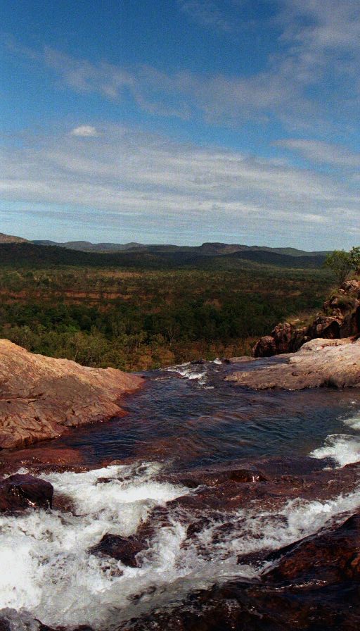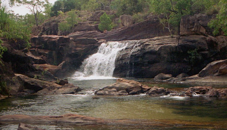 Drove down through the park then turned off the pavement to the 4WD only Waterfall Creek road. The road was actually pretty good, with only a few rough spots. The 4WD requirement was because of the numerous floodways (max depth around a foot) and a couple patches of sand. The drive in took about 40 minutes. A ranger had recommended the trip to Gunlom Falls when I asked about the currently inaccessible Jim Jim Falls. I figured it probably wouldn't be much - just a consolation to not being able to visit the famous falls. I was wrong, it was a lovely site. A fairly high waterfall dropping in to a deep, large (200 yards wide) round pool - and best of all no crocs, so swimming is safe! Even though, according to the guidebook, part of Crocodile Dundee was filmed there. Barry wasn't to keen on the hike up, so I left him at the bottom and climbed the steep trail (nearly a scramble) up to the top of the falls. Even better! There are several large pools of water for swimming - and an incredible view out over the Kakadu forest. This would have been an incredible spot to camp for a couple days - spending an entire day frolicking under the waterfall and exploring upstream would be fantastic. Shortly after getting back to the pavement I narrowly avoided running over a huge goanna - it stretched across the entire lane, nearly five feet long!
