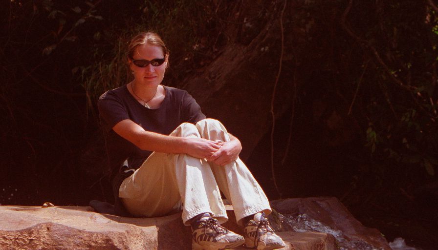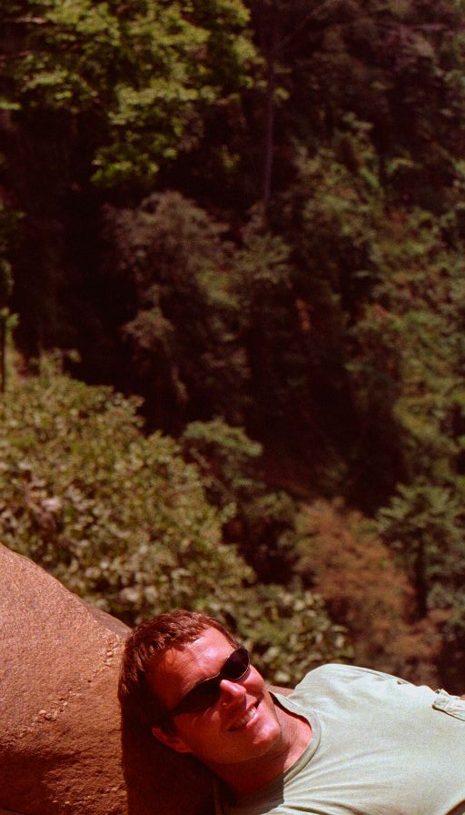 After taking pictures (grrr - I really would have liked my wide angle lens here) and sitting admiring the view (ok, and resting) we headed back up the path to the first spot at the top of the first falls. I wanted to scramble down a bit to get to the actual drop off - I always need to look over the edge. Back at the viewpoint the three other people that stayed at the Stone House last night were already down where I wanted to go. Amy was a little concerned with the climb and they'd already left their packs at the top. So she left her pack with theirs. Shortly after we climbed down the other group left and we continued looking around and taking pictures. About ten minutes later we climbed back up and... no bag! We saw the other group and they said her bag was there when they left so in the five or so minutes between us someone took her bag. There was nothing of any real value in the bag, mostly just dirty clothes, toiletries, and her sleeping bag - but also some small things like her alarm clock, Swiss Army knife, and sunglasses case. We hiked back up the road to where there was a group of locals selling fruit and passed on word that we were offering a $40 reward if the bag was brought to us at our place in Chitimba. We stopped back at the main falls view point, at the permaculture camp, and at a tea house further down to make the same offer. I could tell the reward was a probably a bit high because people would go rushing off as soon as they understood what we were offering.