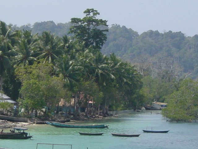 Woke up feeling surprisingly good considering how early it was. I caught a taxi to the jetty and boarded the ferry without any problem. It's amazing how similar fishing parts look. With the deep green on shore, the pre-dawn darkness, and all the rigged fishing boats I feel as if I were in the Pacific Northwest not deep in the Indian ocean! The boat left on time and despite what the hotel manager told me yesterday the ferry was no where near full, probably less than twenty percent! The ferry ride was to far from most of the islands to be interesting. It was smooth, but except for the occasional glimpse mangrove covered island shores, but boring. Just over four hours after leaving Port Blair I saw my first pure white sand beach - next to the ferry jetty on Havelock Island!
