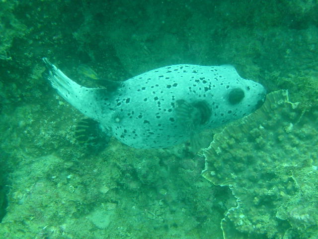 When I woke up my stomach was feeling better and I realized I was to sunburned to go to the beach so I decided to dive again. The first dive was at "The Wall" - only 20 minutes away. The visibility was horrible (less than 5 meters), but it was still a very enjoyable dive as there were tons of big fish. Between the dives we went back to the jetty for a couple hours where I had a light lunch and read. The second dive was about 40 minutes out at "Aquarium". The visibility was much better and again there wasn't anything really exciting, but it was still very nice. Plus it was long - well over an hour underwater. Back on shore it was dark and I had to ride home in the dark again - not nearly as stressful this time, but I still didn't like it.