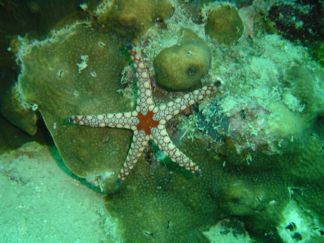 Back to diving today. The first dive was close to the jetty at Lighthouse reef. There was nothing fantastic about the dive, but despite mediocre visibility (about 30 feet) it was a really nice dive. Between the two dives we went back to shore, but for less than an hour.