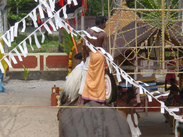 We had an early-ish morning - not as bad as yesterday, but still earlier than I liked. We'd been told the train came at nine so at eight thirty we were there, and the train wasn't scheduled to come until nine forty - still, better to be early than late. With our extra time we had a breakfast of chai, poori, and vadai from a station vendor and looked through the guide books. The train ride was a little longer than expected - two and a half hours - it got stopped a lot. Once it was stopped outside a temple with a celebration going one. It was very cool to watch - there were men dancing on the backs of a pair of elephants!