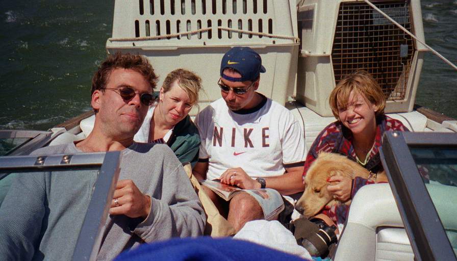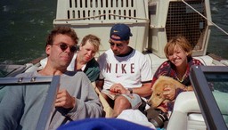 - 349. The crew (Tim, Amy, Brian, Chantel, and Barkely) homeward bound in the stern, Columbia River Gorge, WA