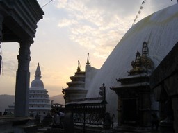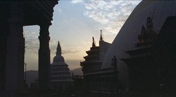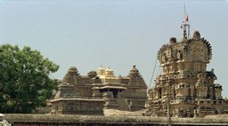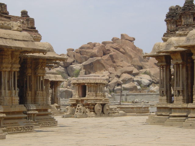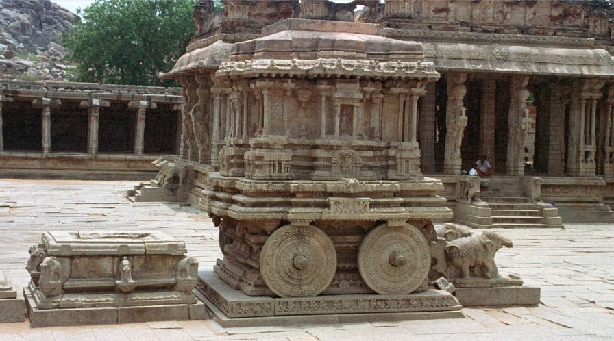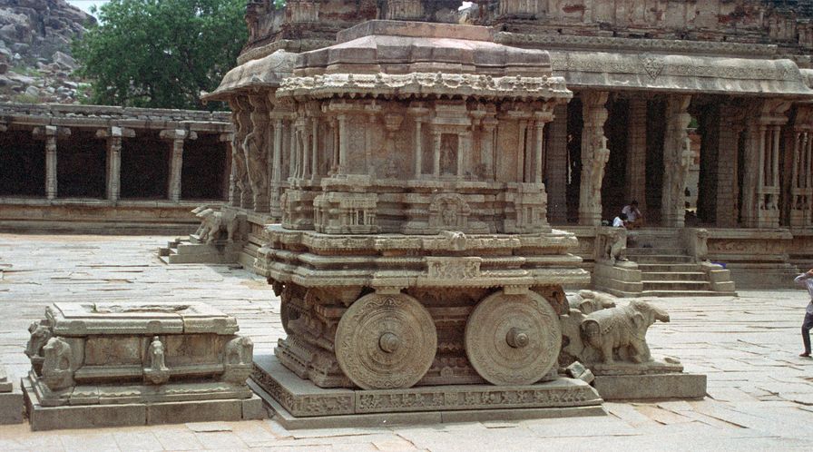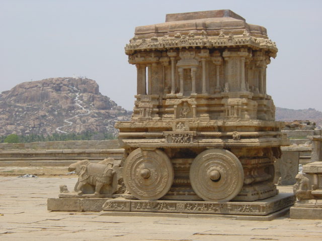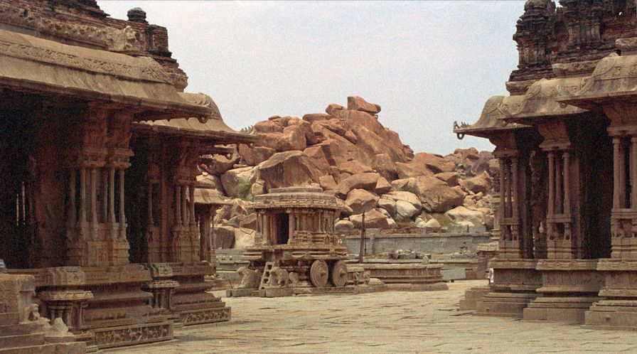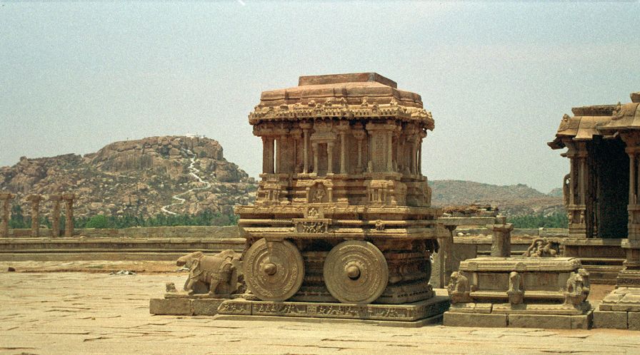 - 5372. Car temple and Virupaksha Temple silhouetted, Hampi, India