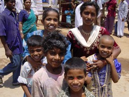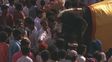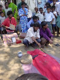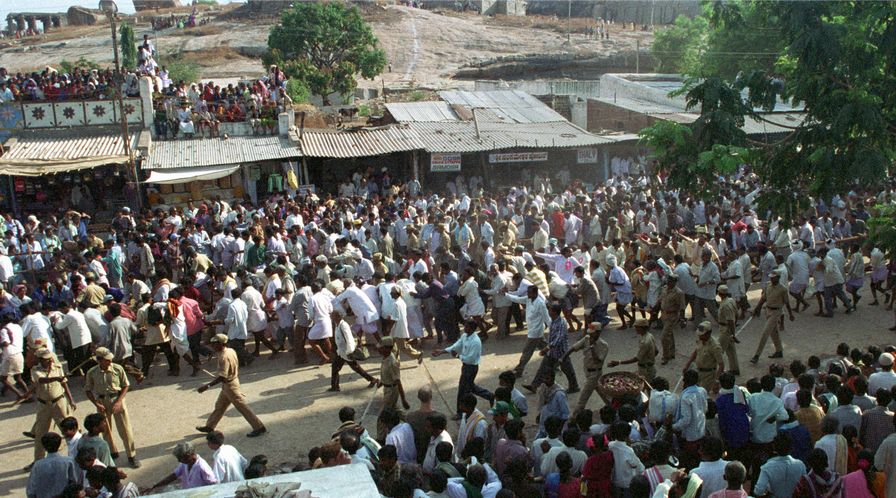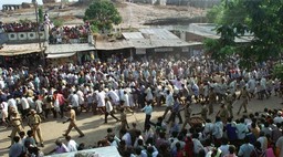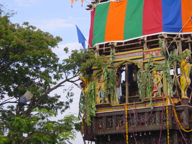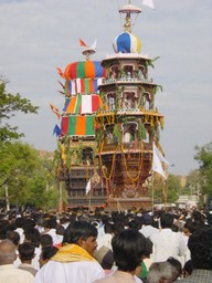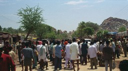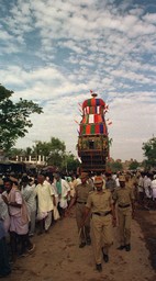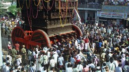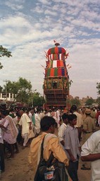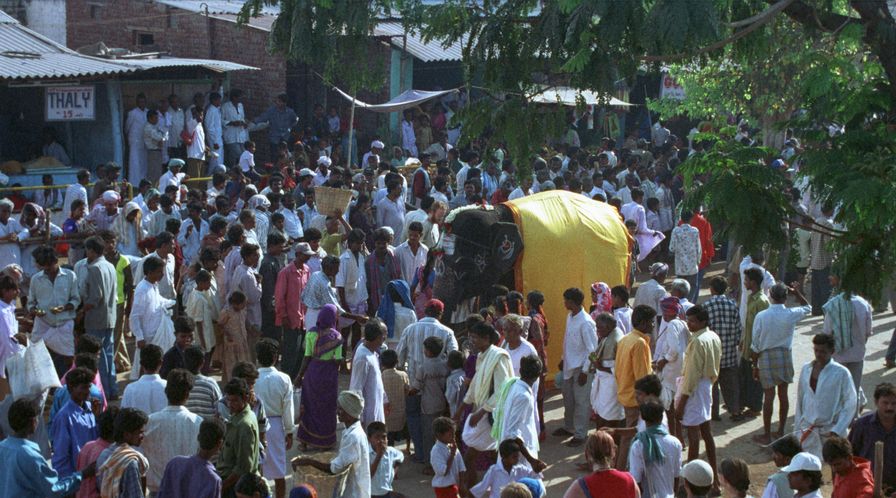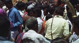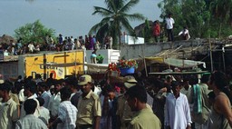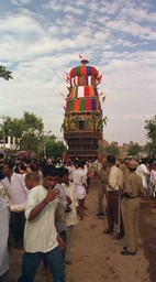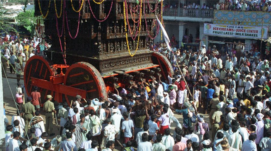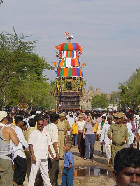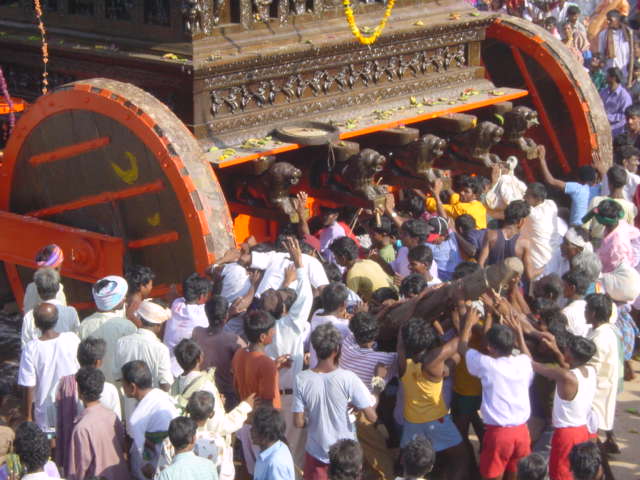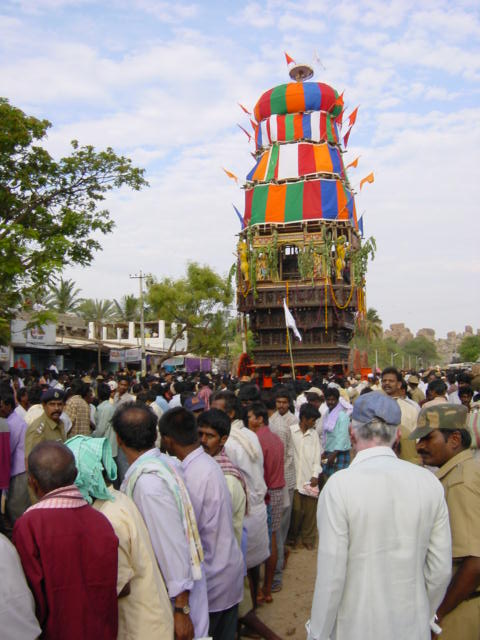 - 5383. Crowd pushing to unstick car temple, Hampi, India
