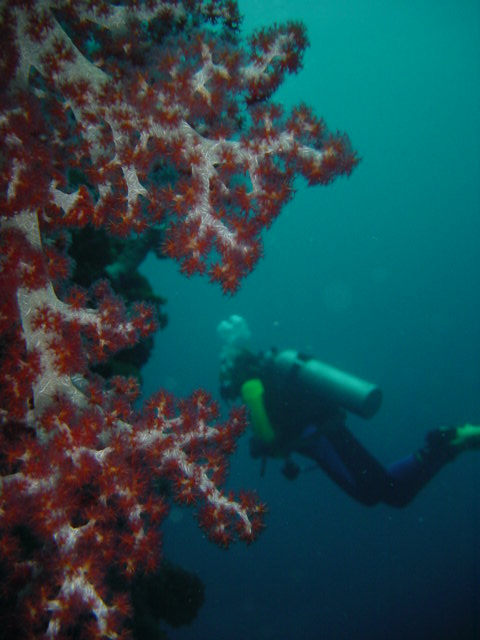 - 6126. Soft corals and diver, Wreck of the Fujikawa Maru, Chuuk, Micronesia