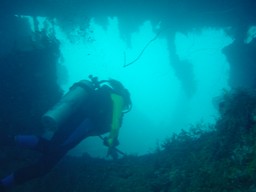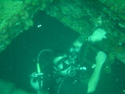 - 6108. Stacy exiting the wreck, Wreck of the Rio de Janeiro Maru, Chuuk, Micronesia
