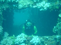- 6135. Diver in hold, Wreck of the Fujikawa Maru, Chuuk, Micronesia