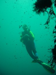 - 6091. Me climbing out of a hold, Wreck of the Fujikawa Maru, Chuuk, Micronesia