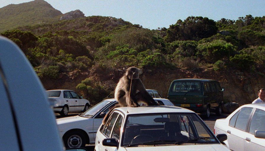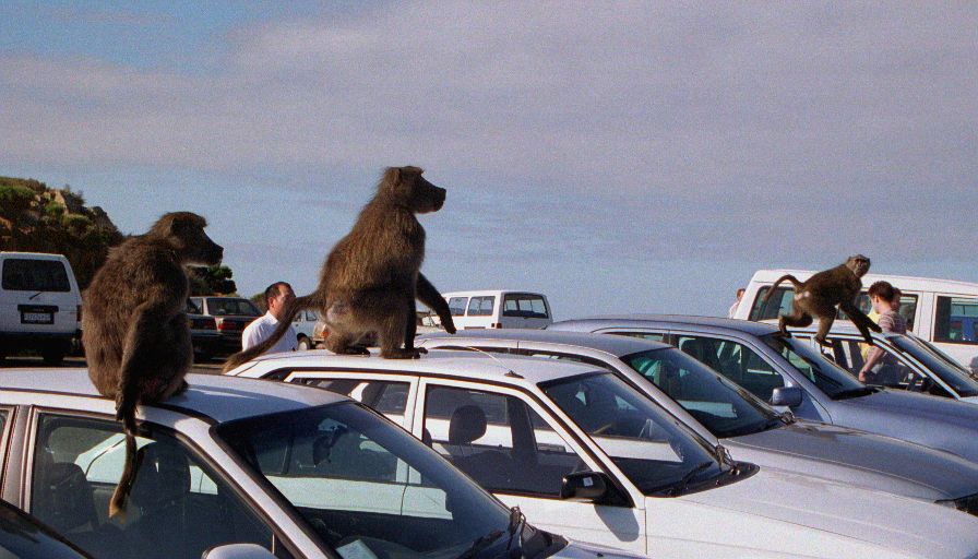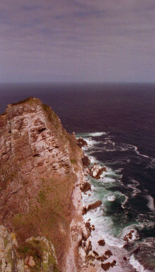 Next up was Cape Point - the southernmost tip of the cape. Even more dramatic, higher cliffs with the added bonus of a couple light houses. Spent two hours hiking up and down the hill here to get out to the actual point (Point Diaz). The weather suddenly cleared up and I think I got very sunburned here. Joy and Monica saw a baboon and I was quite jealous - until we were getting ready to leave at which time the parking lot was invaded by them. It was amazing, as soon as the rangers office closed there was a half dozen baboon sitting on cars trying to get in. We sat around a watched for a bit, and saw a guy who was a little careless when he opened his minivan door have to figure out how to get a giant baboon out (he managed, but came close to loosing his head when the baboon took a swing at him).