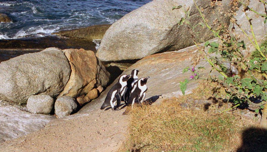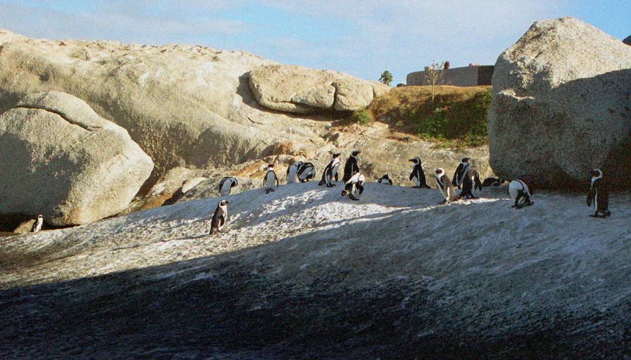 Stopped at Boulders Beach because I wanted the others to see the penguins. It was getting near dusk and way to cold to swim or lay on the beach so we opted not to pay to go in the park itself. No problems though, we saw plenty of penguins while climbing around on the rocks outside the park.
