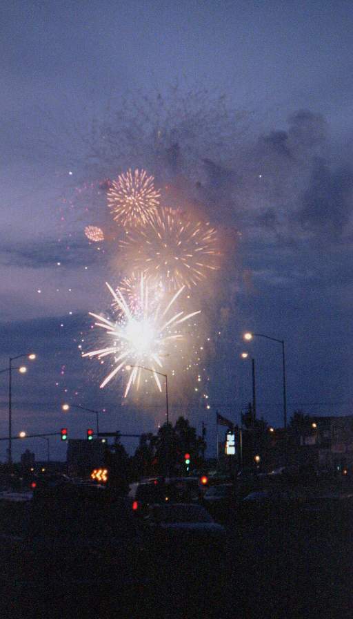 What a surprise, fireworks in the daylight are better than at night!?!?! I went to the fireworks show because I wanted to be able to complain about fireworks in the day light (since it doesn't get dark here this time of year). The show started at midnight, and it was your standard fireworks display. What surprised me was that the daylight made the fireworks seem more fragile, more magical, but at the same time more real. You could see the smoke trails, but that just added another dimension. I think I enjoyed this display a lot more than I have any other for a long time.