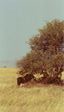 Right at the beginning of our drive we came on a big group of cars looking at something. When we wormed our way near and searched for a while we found another leopard - way up in the tree, barely visible. I have no idea how the first car sighted him unless they watched him climb up! The rest of the drive wasn't that great. There were some lions, the usual zebras and antelopes, and elephants. The highlights were a large male lion and a group of elephants. The lion was huge. He wandered through the grass then settled down for a nap in the shade - he wasn't that close, but he was majestic. The elephants were a large family group (maybe twenty of them) which included a number of babies as well as young and adults. We stopped to watch them drink then they spread out and slowly wandered up to the road and crossed in front of us - then stopped! They wouldn't move, and after waiting half and hour we gave up and backtracked to find a different road back to camp.