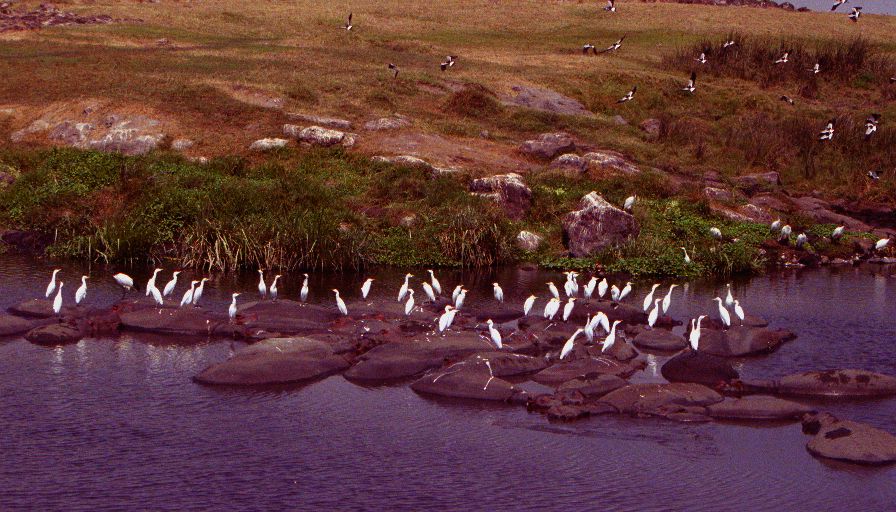 At the lakeside we sat and watched a huge number of bright pink lesser flamingos mingle with some larger greater flamingos and a small herd of hippopotamuses - so stereotypical Africa it looked staged.