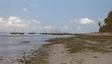 The sun started to break through a little so we headed out for a walk down the beach. It's an incredible spot - soft, pure white sand and water that seems even bluer than yesterdays. Walked down the the beach getting our feet wet, picking up sea shells, and just enjoying the sand and water. Saw lots of locals collecting coral (probably for construction or lime) and seaweed (for ?) and everywhere we went there were kids beating octopus (must be a staple here). There are also dhows everywhere - anchored in the water, pulled up on the beach, and on shore in various stages of construction or repair (Nungwi is known as a dhow building center). Stopped for a beer at a posh resort so we could use the toilets and take cover from a sudden shower. After the rain stopped the sun really started to break through and we continued down the beach to a lighthouse. Here the tide had came up to far for us to continue.