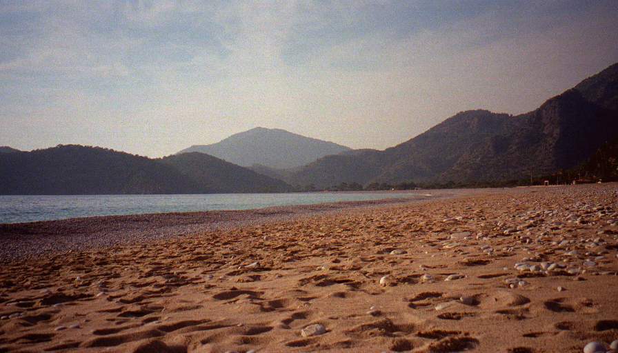 Caught a Dolmus to Ölüdeniz. I expected it to be a bit slow this time a year, but it was dead. No one on the beach, nothing open. As I was about to give up and head back to Fethiye three women walked past and athen one turned around and asked if I'd been staying at the Backpacker in Budapest. I talked to them a bit (they were staying in Fethiye) and then started back to catch a dolmus back to Fethiye when a woman aproached and asked if I was looking for someplace to stay. She was a South African who was staying with her boyfriend whop ran the one campground that was open. 30 minutes later I had a small cabin in what looked like an Vietnam era refugee camp. Since noplace was open for food, I got invited to diner. I spent the afternoon at the beach (not quite warm enough, but still very, very nice). Diner was Mel (the South African woman), Solomon (her boyfriend the campground manager), and number of locals (including an army officer who didn't seem to like Americans). Diner was excelent (who needs plates or utinsils anyway?) and afterwards there was much talking, laughing, and I learned the Turkish card game "Pisht".